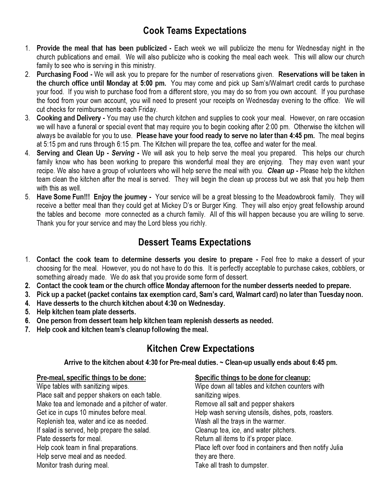 Wednesday Meal Teams